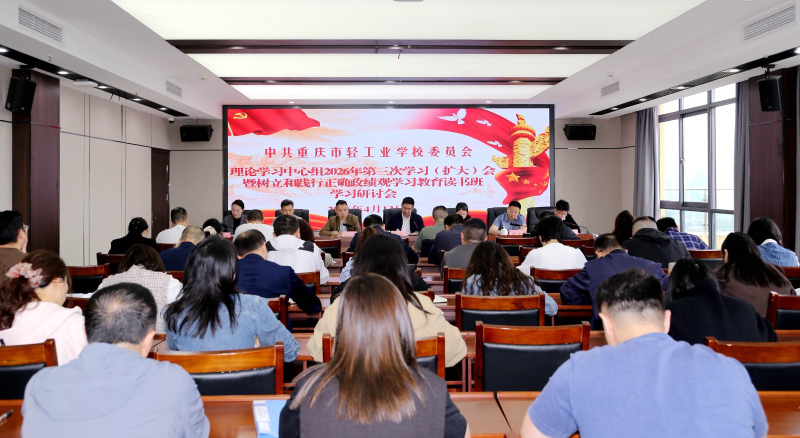 4月13日上午,学校党委在笃实楼1101会议室召开2026年第三次理论中心组(扩大)学习暨树立和践行正确政绩观学习教育读书班学习研讨会。全体中层及以上干部、各党支部书记及纪检委员参会,党委书记胡跃主持会议并组织学习。