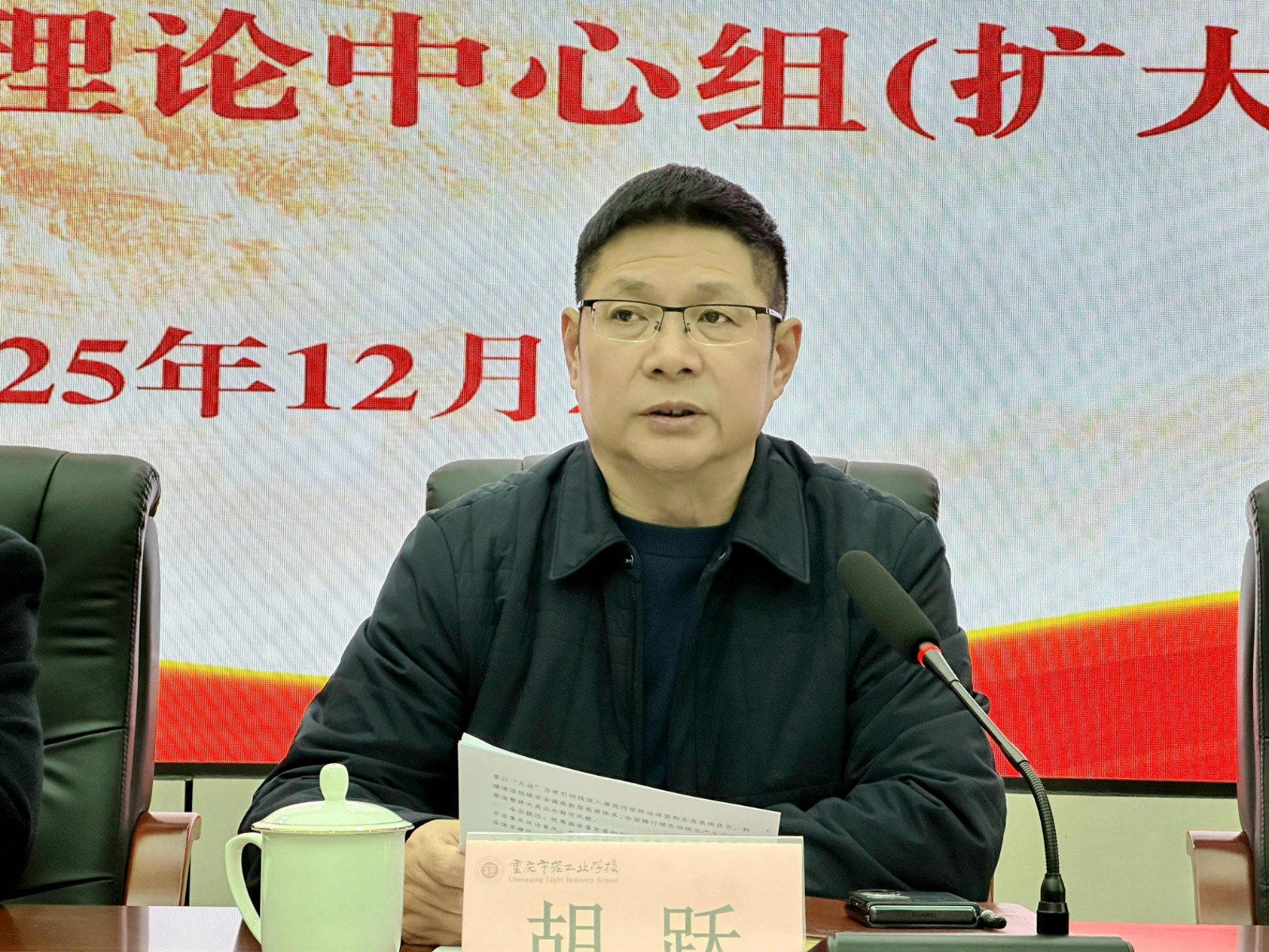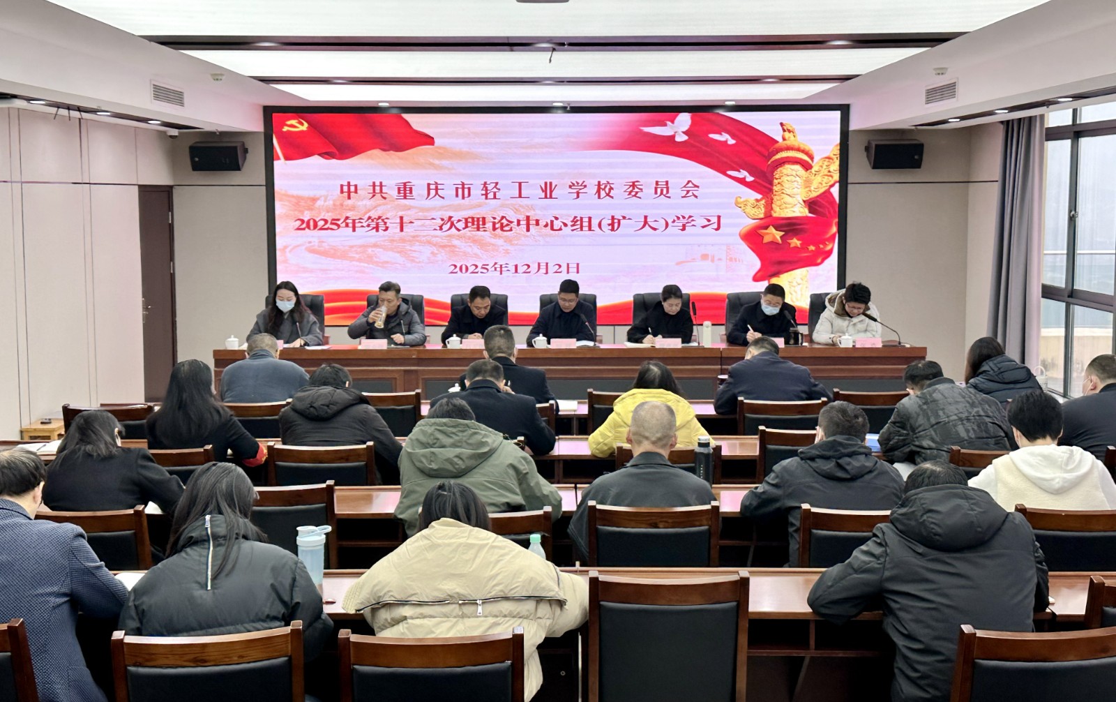 12月2日,重庆市轻工业学校党委组织召开2025年第十二次理论中心组(扩大)学习会,深入贯彻上级决策部署,系统谋划“十五五”时期改革发展路径。全体中层及以上干部、各党支部书记参会,党委书记胡跃主持会议并作总结讲话。