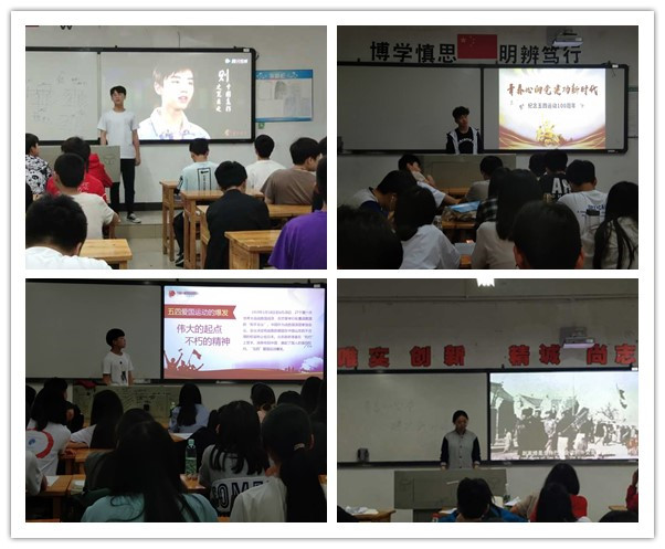 全校各班团支部首先统一收看了团委播放的《纪念五四运动100周年》纪录片,随后各班开展了形式多样、亮点纷呈的团组织生活。