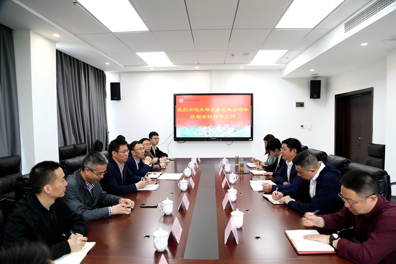 胡校长向唐主任一行的到来表示热烈欢迎,并详细汇报了学校基本情况、发展现状以及近年来开展校地合作情况,分享了的具体成效和经验。唐主任对学校基础设施建设、教育教学管理、校企融合以及服务地方经济做出的成绩等给予了充分肯定。他指出,本次调研是按照区委区政府整体规划,在做好“生态文明、科技创新、城乡融合、民营经济”四篇文章的大背景下,进一步深化校地合作,为区域经济发展提高中高端人才储备开展的实地调研。