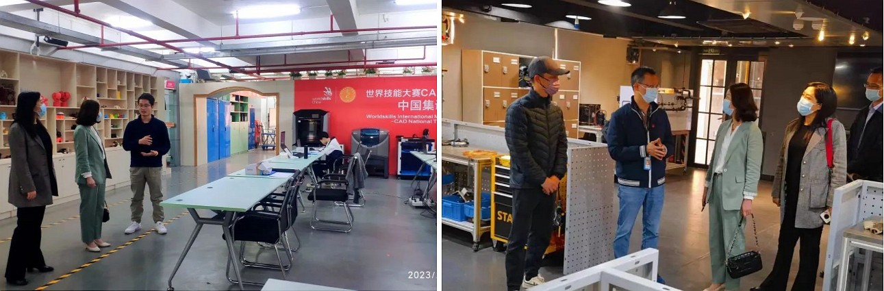 在广州市工贸技师学院副院长赵勤德、训练中心主任刘优、世赛制冷与空调项目中国指导专家组组长李川的陪同下,梁校长一行参观考察了学院“精工求品质 极致而至善”办学成果展厅、世界技能大赛制冷与空调项目、移动应用开发、CAD机械设计等项目国家集训基地,详细了解了学院在基地建设、世赛参赛、选手培养等相关情况。