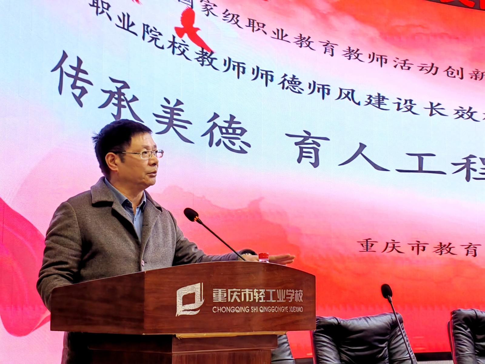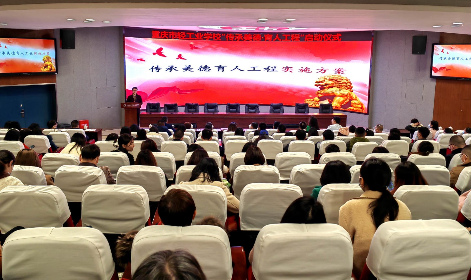 为深入贯彻落实习近平总书记全国教育大会重要讲话精神、落实中共中央办公厅、国务院办公厅《关于实施中华优秀传统文化传承发展工程的意见》等系列部署,立足“立德树人”根本任务,助力学校“双优”建设和“三全育人”工作,2023年3月2日,由重庆市教育科学研究院和重庆市轻工业学校联合主办的“传承美德﹒育人工程”启动仪式在学校多功能厅举行。仪式由副校长陈东主持,全校教职工参加。