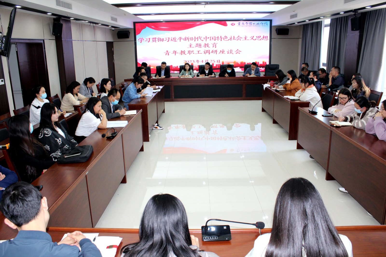 为深入开展学习贯彻习近平新时代中国特色社会主义思想主题教育,扎实做好调查研究, 4月25日,学校组织召开学习贯彻习近平新时代中国特色社会主义思想主题教育青年教职工调研座谈会。党委书记胡跃主持会议,全体校领导班子及青年教职工代表参加。