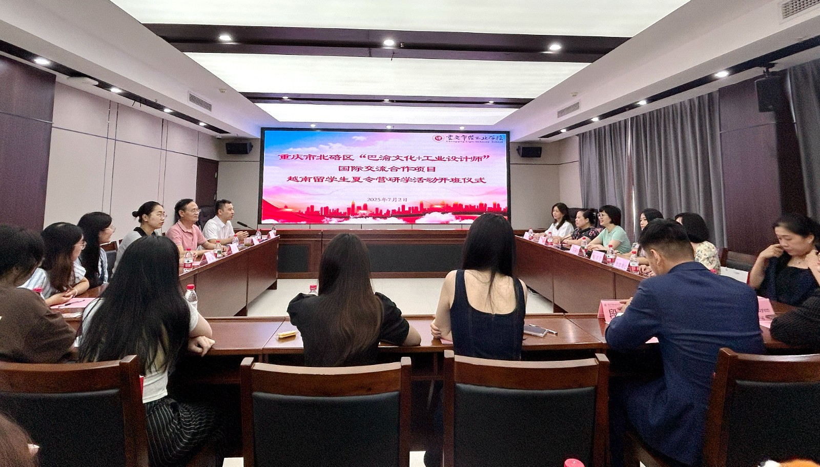 2025年7月2日,第二期中越“巴渝文化+工业设计师”短期访学项目在我校正式启动。来自越南胡志明市国家大学、河内国家大学、雒鸿大学、胡志明市师范大学、黄山学院等多所院校的师生代表,我校党委专职副书记吕正伟、对外合作办主任赵勇及相关人员参加开班仪式。