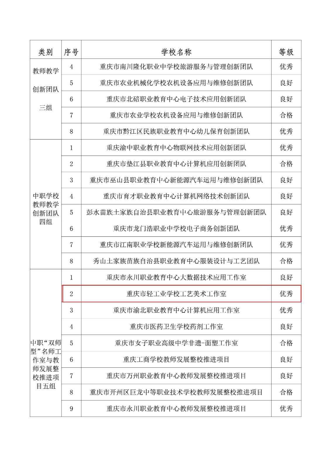 近期,在重庆市第三批职业教育双师型教师团队中期建设情况调研活动中,学校校长梁亮亮主持的重庆市中等职业学校工艺美术(工业设计方向)“双师型”名师工作室获评“优秀”。这是继重庆市职业院校物联网技术应用专业教师教学创新团队获评“优秀”后,学校教师团队建设的又一个重要荣誉。