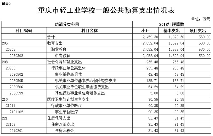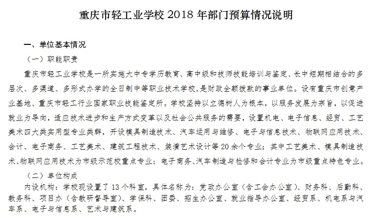 重庆市轻工业学校2018年部门预算公开