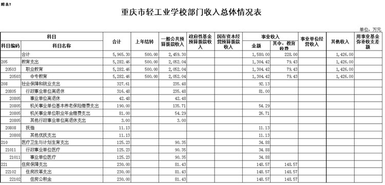重庆市轻工业学校2015年部门预算