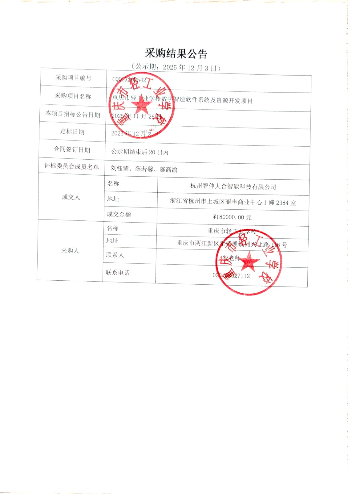 上一篇:重庆市轻工业学校数字智造软件系统及资源开发项目采购公告 下一篇:重庆市轻工业学校关于2025年终关账及财务决算有关事项的通知