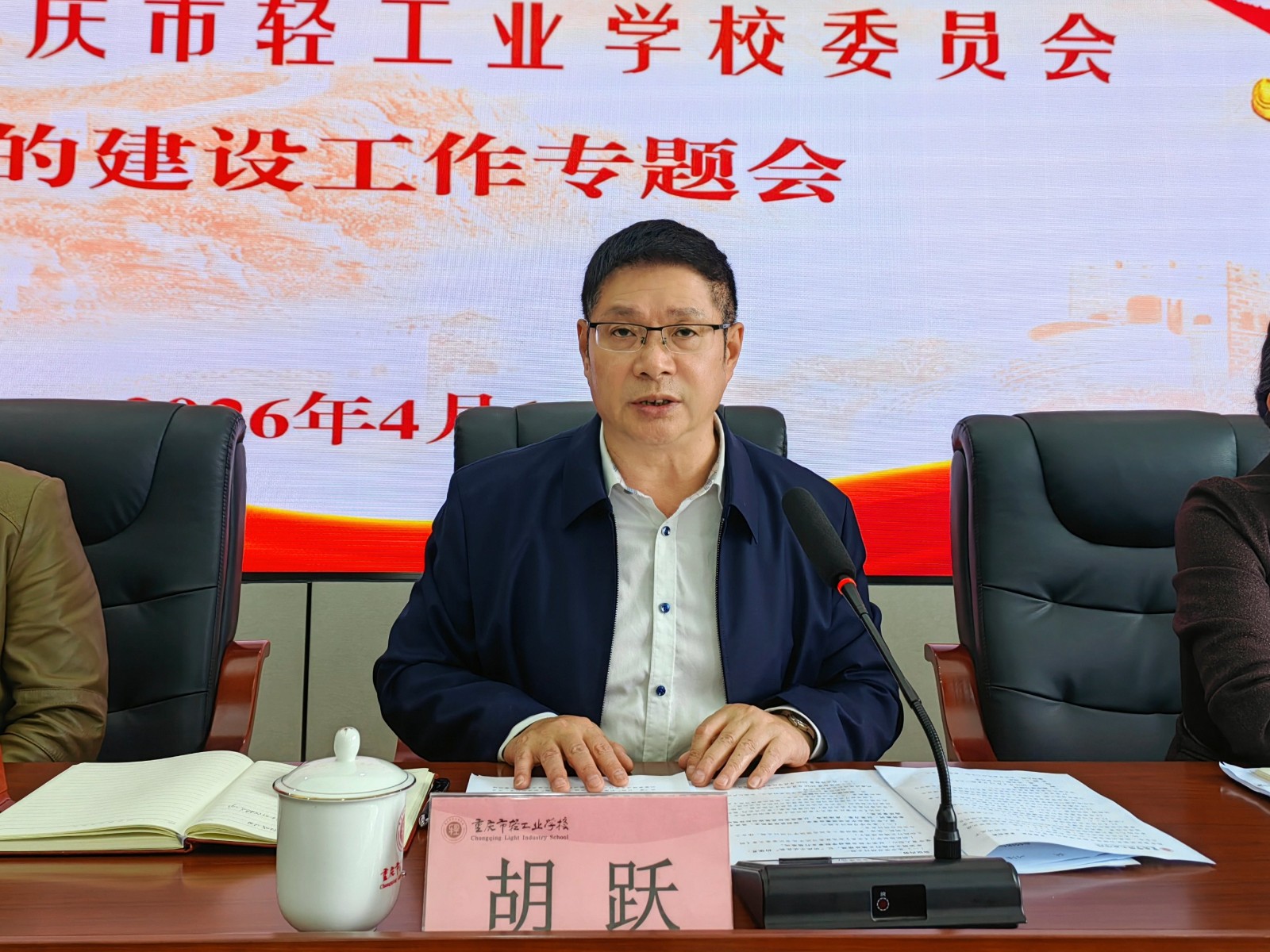 为深入学习贯彻习近平新时代中国特色社会主义思想和党的二十大精神,全面落实新时代党的建设总要求,纵深推进全面从严治党,4月13日,重庆市轻工业学校召开2026年党的建设工作专题会。全体中层及以上干部、各党支部书记及纪检委员等参加会议,党委书记胡跃主持会议并讲话。