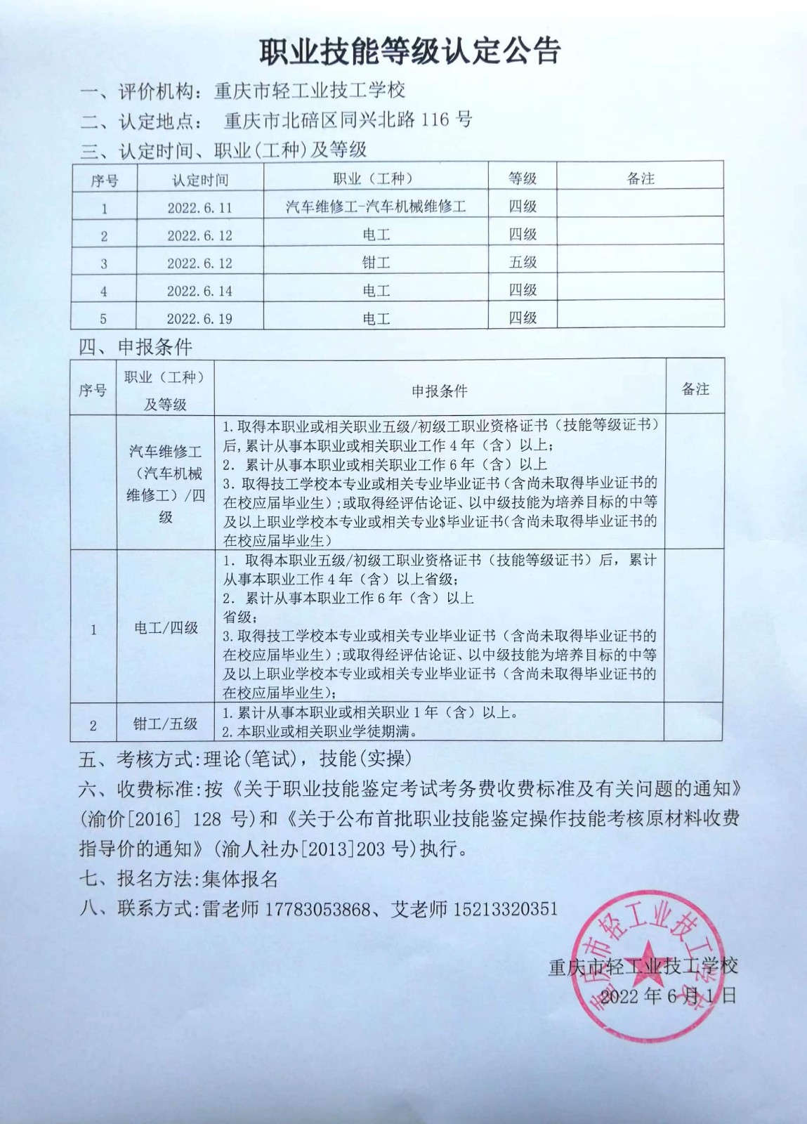 职业技能等级认定公告
