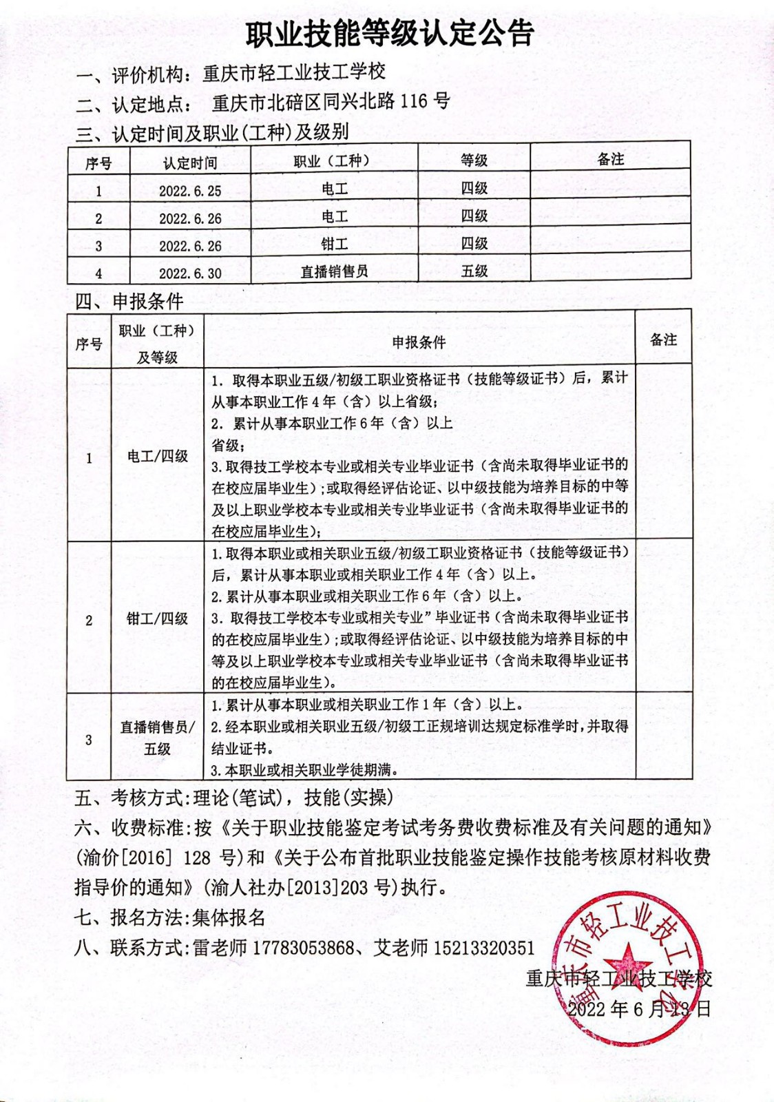 职业技能等级认定公告