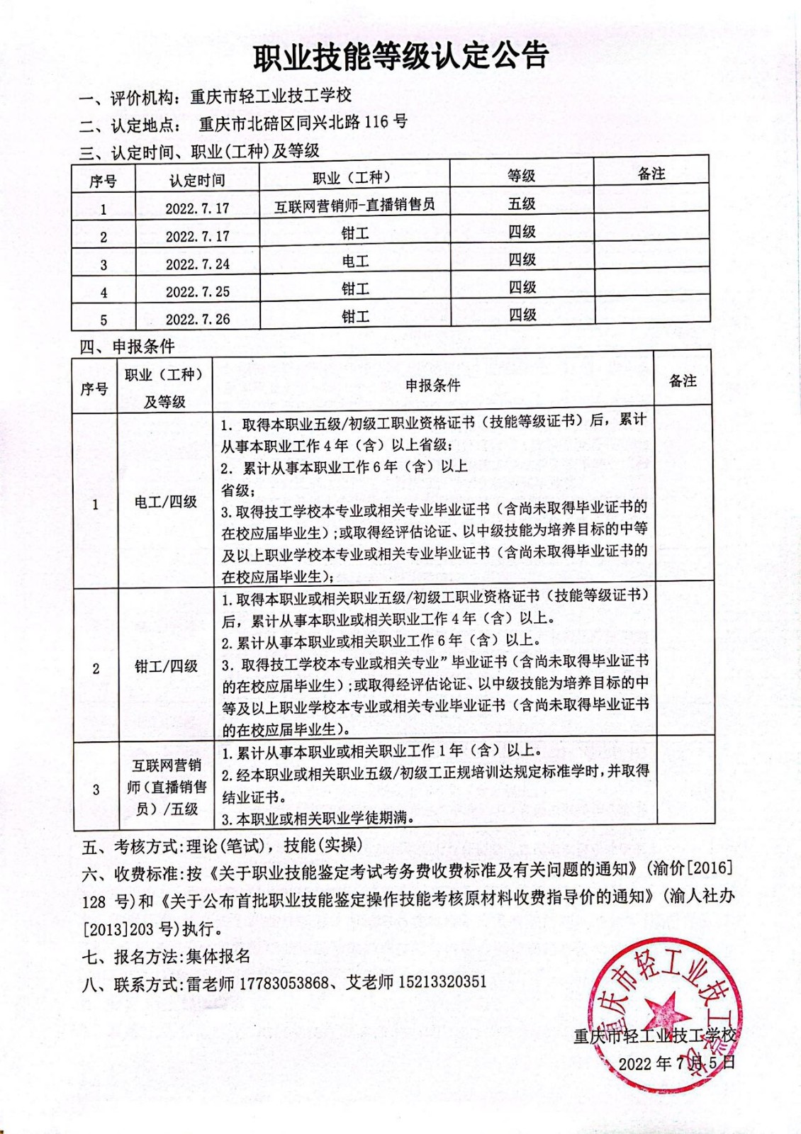 职业技能等级认定公告
