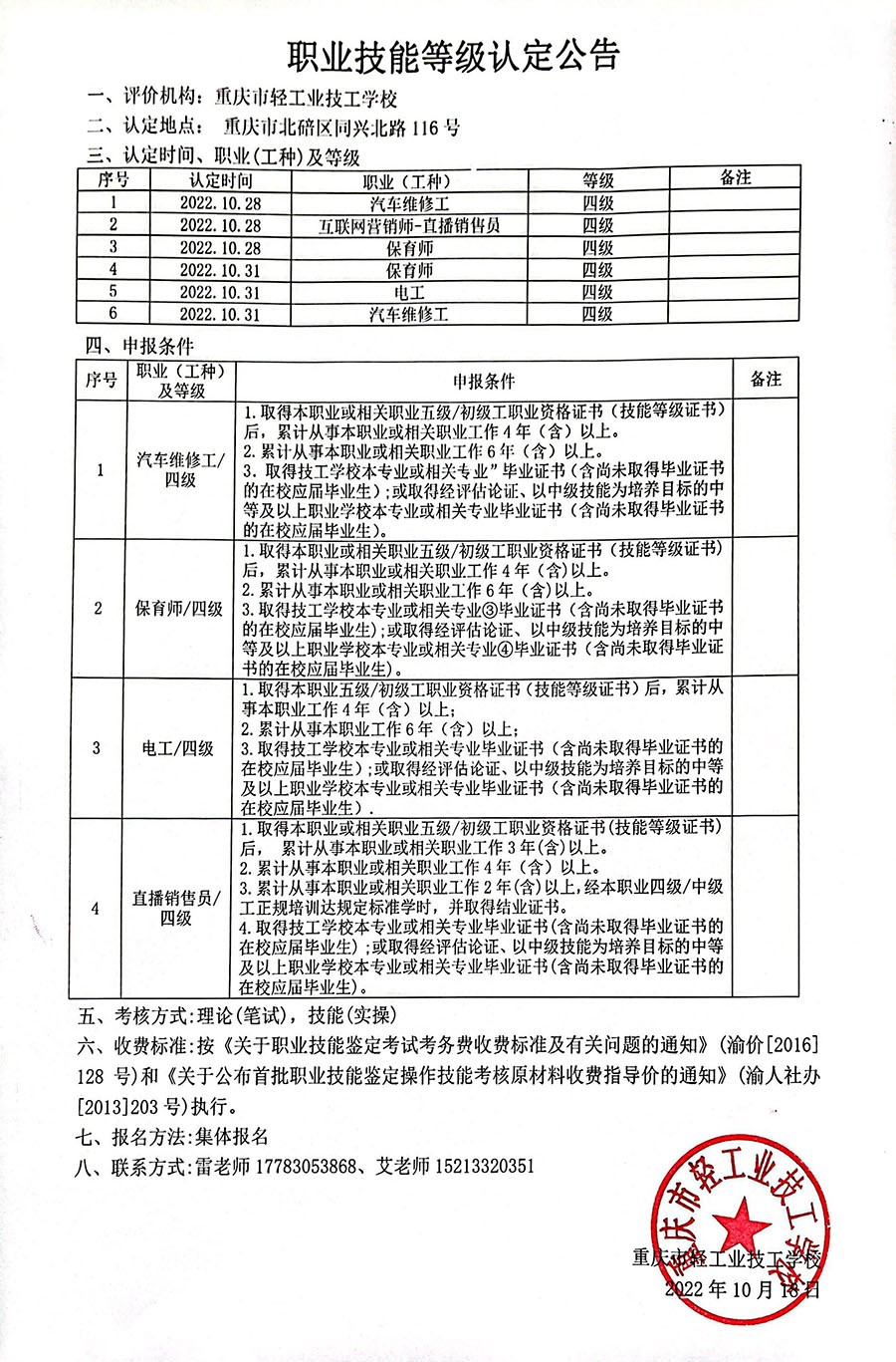职业技能等级认定公告