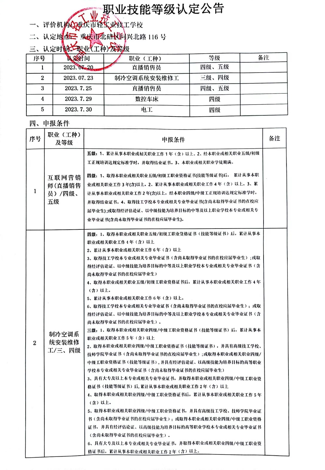 职业技能等级认定公告