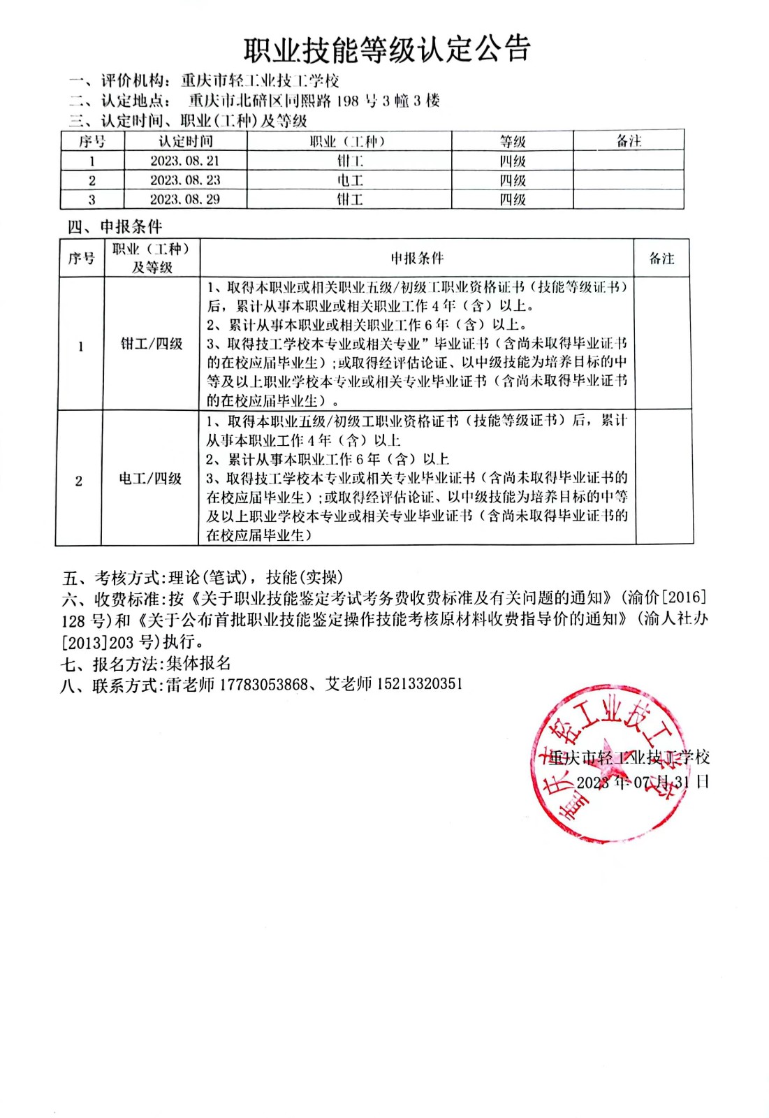 职业技能等级认定公告