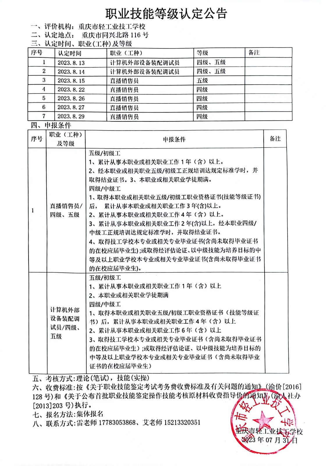 职业技能等级认定公告