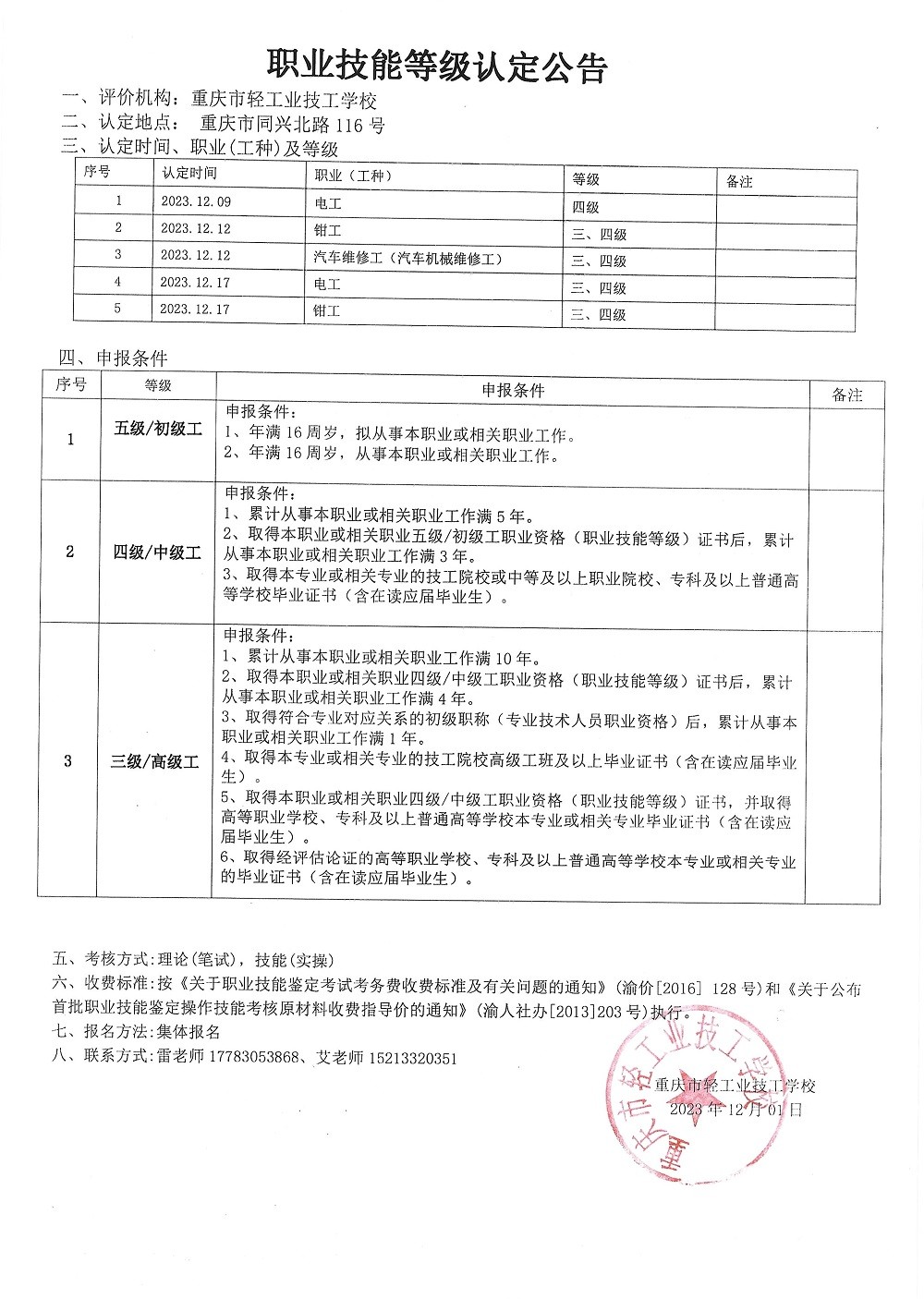 职业技能等级认定公告