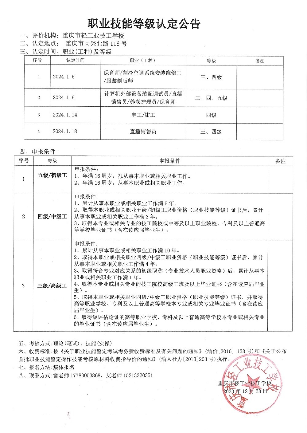 职业技能等级认定公告