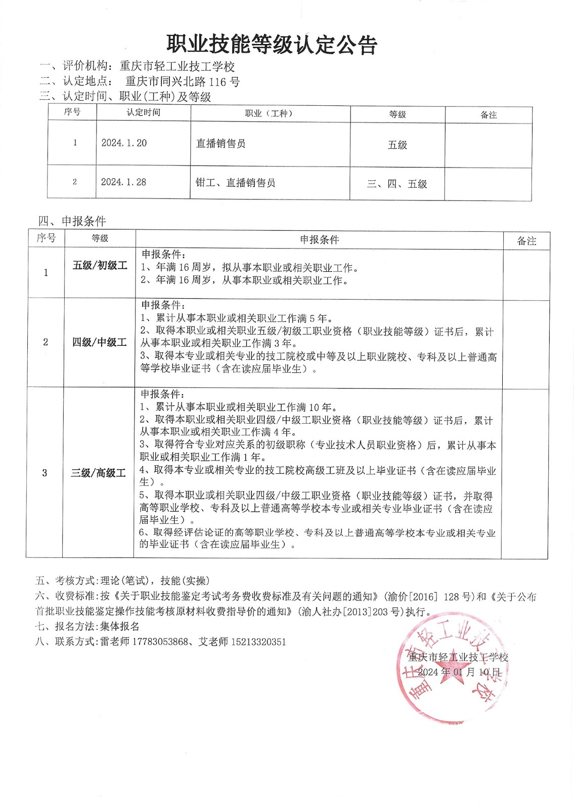 职业技能等级认定公告