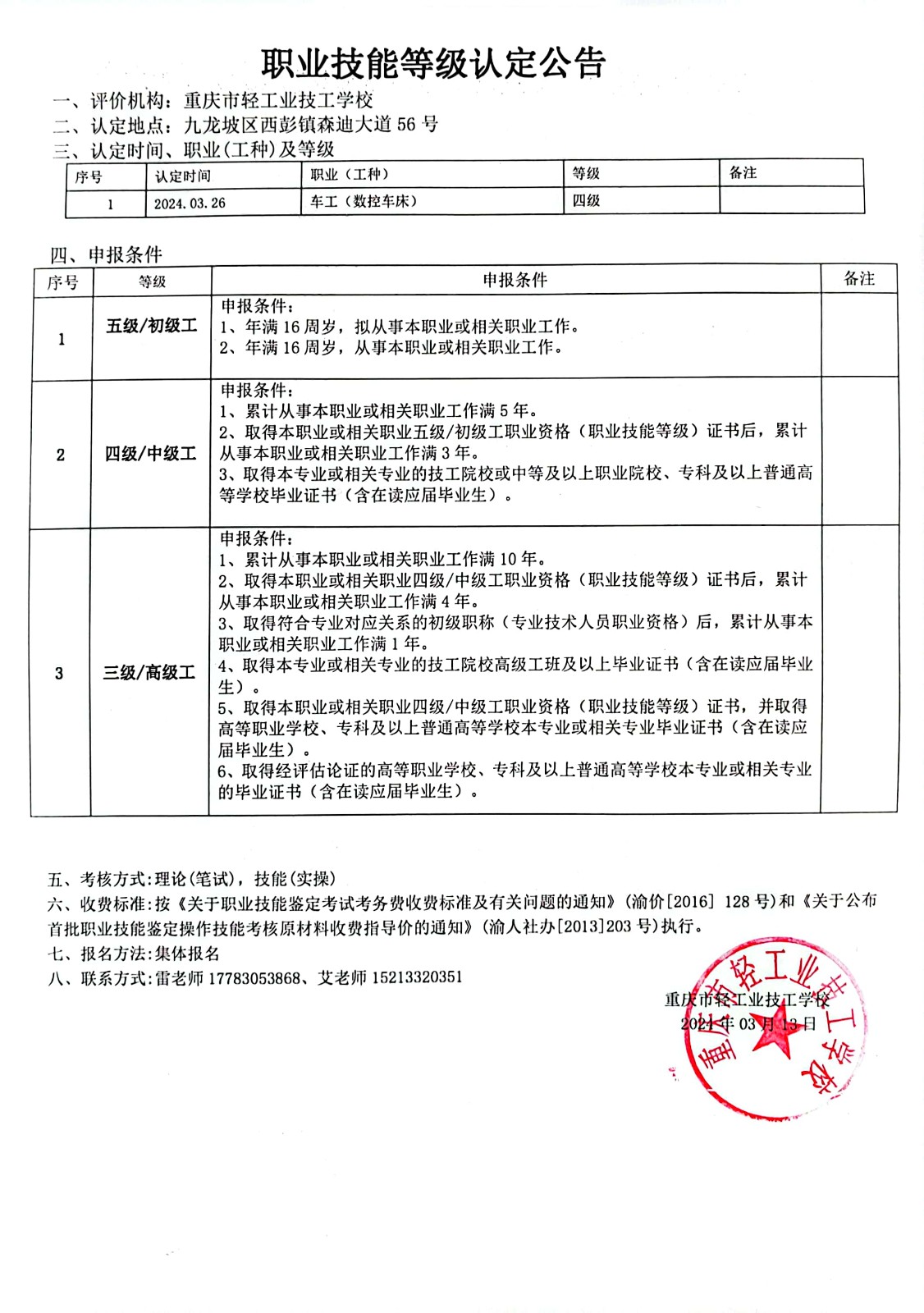 职业技能等级认定公告