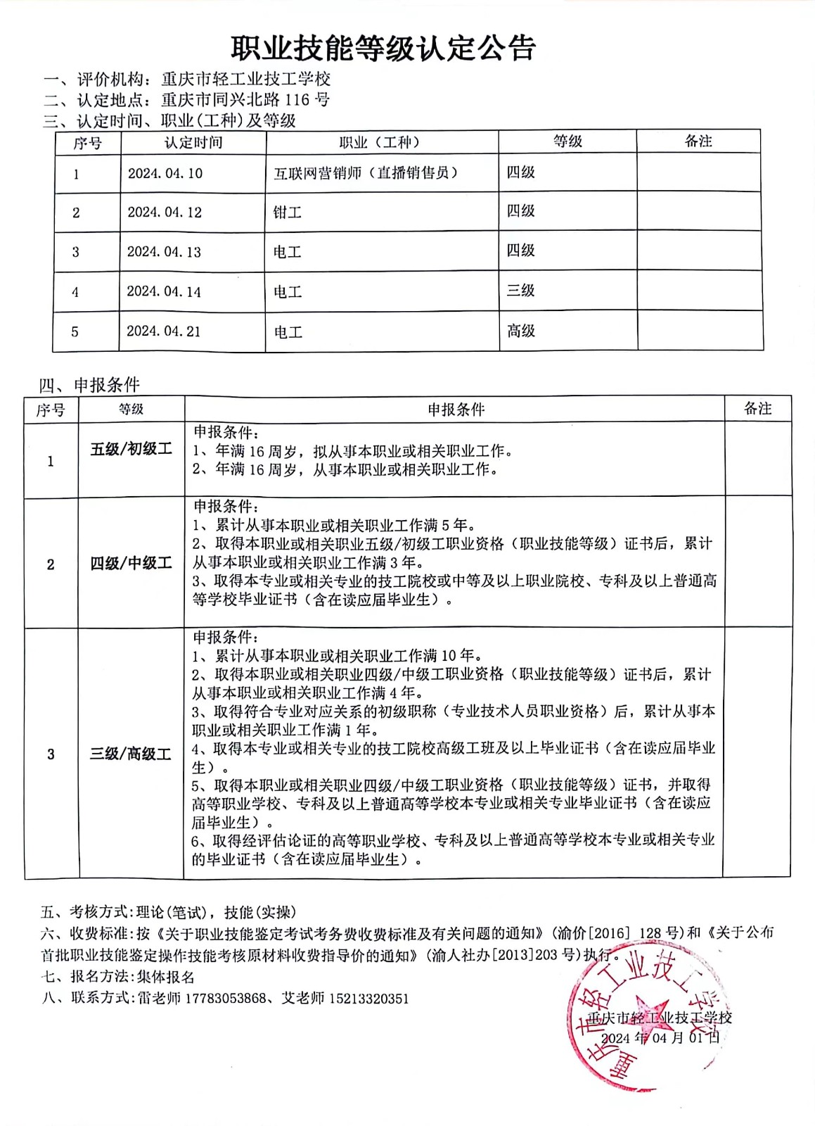 职业技能等级认定公告
