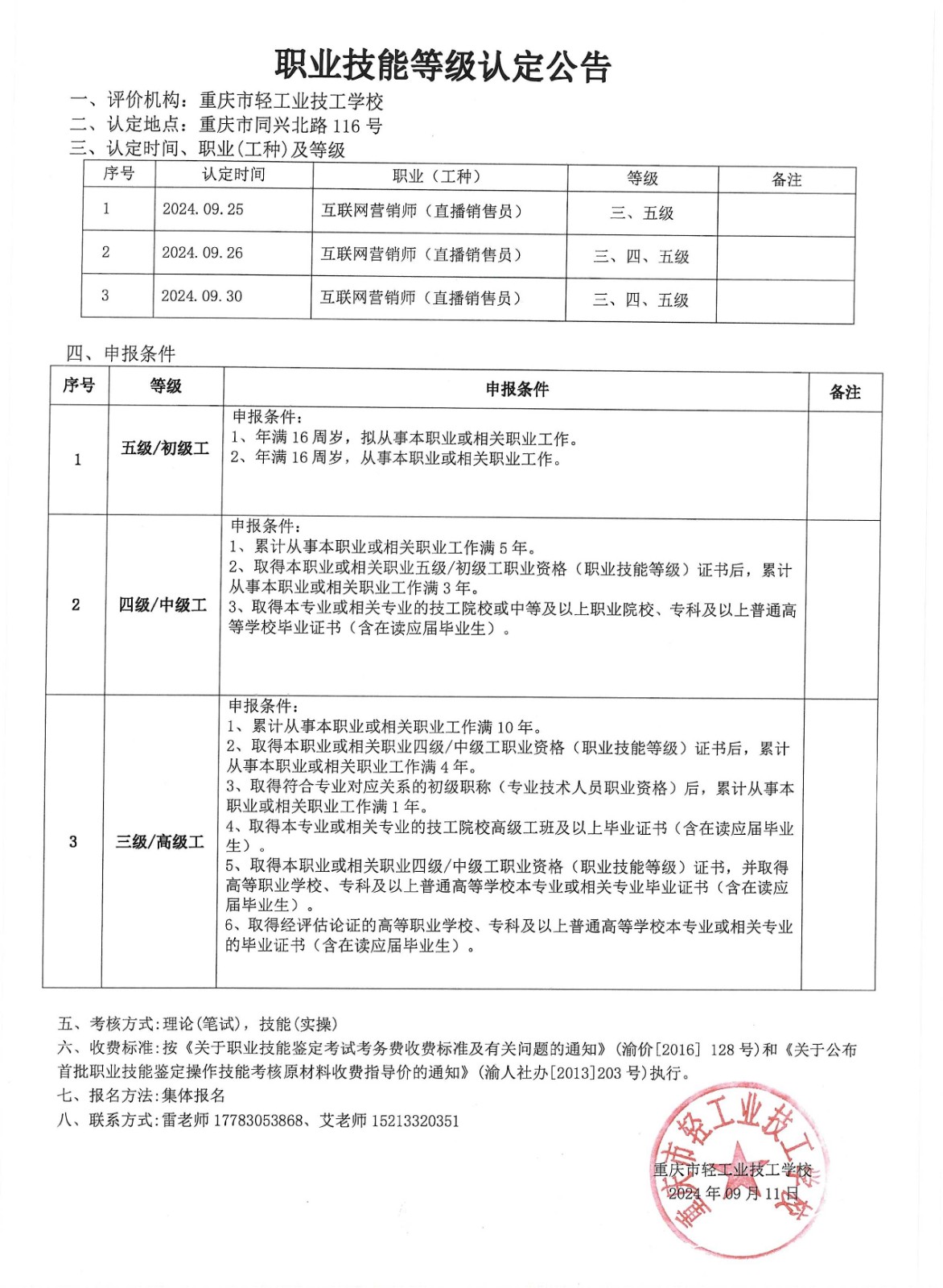 职业技能等级认定公告