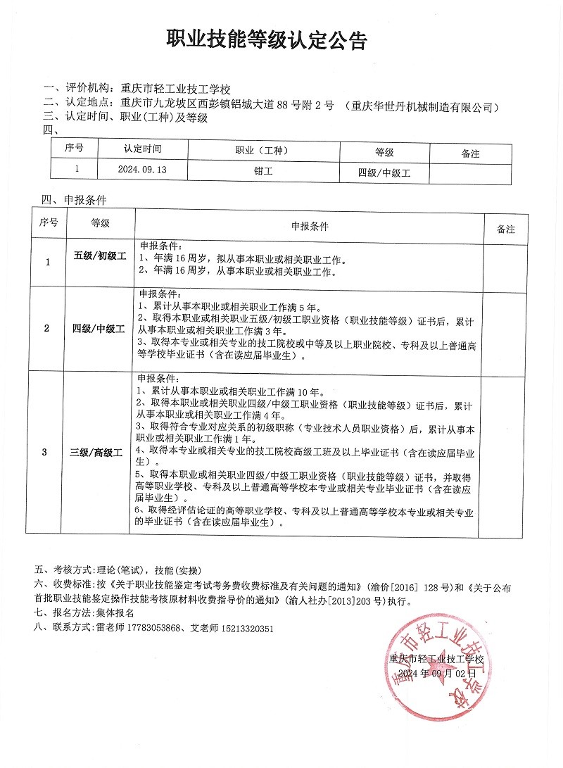 职业技能等级认定公告