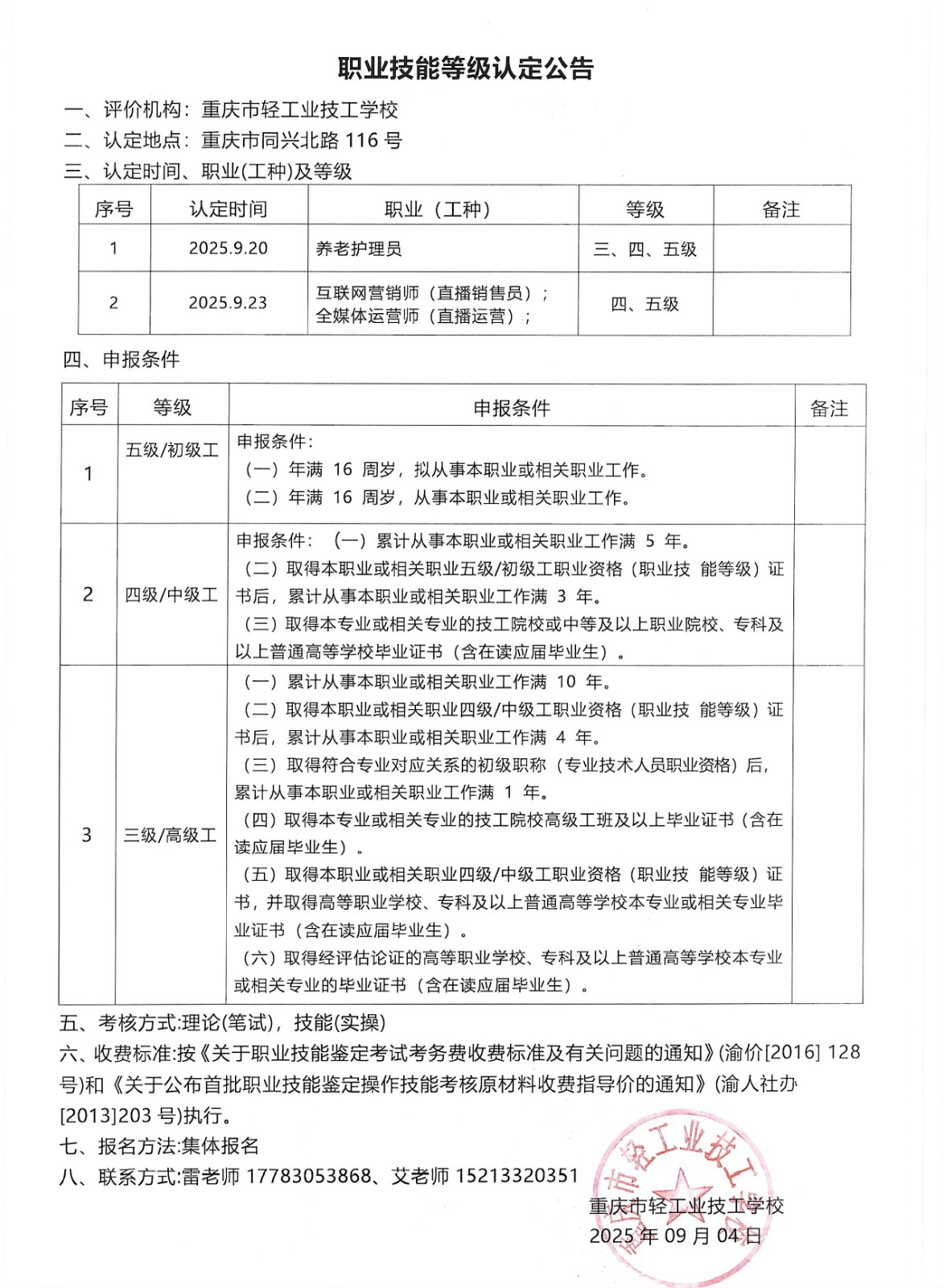 职业技能等级认定公告