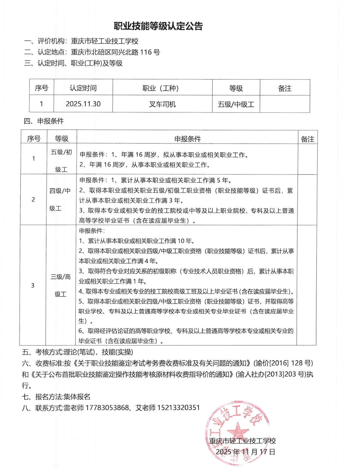 职业技能等级认定公告