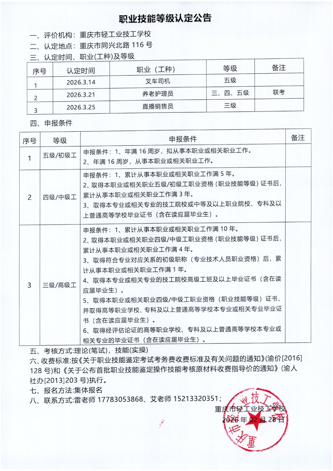 职业技能等级认定公告2026.3.14-3.25