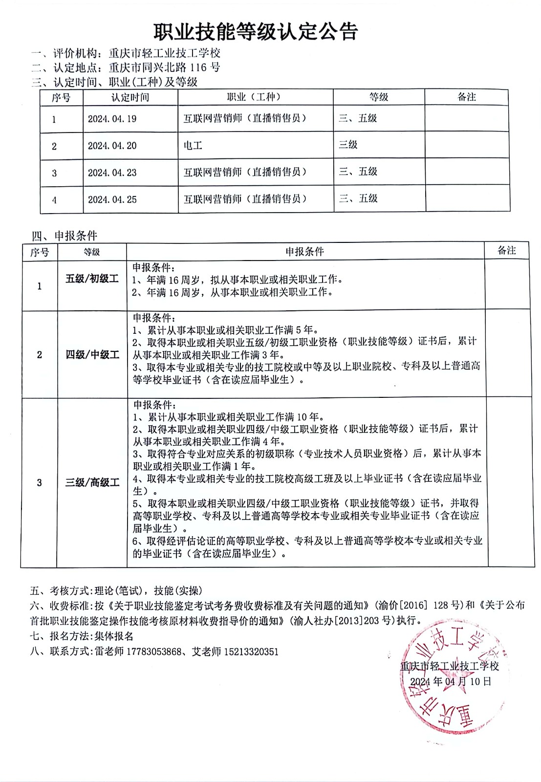 职业技能等级认定公告