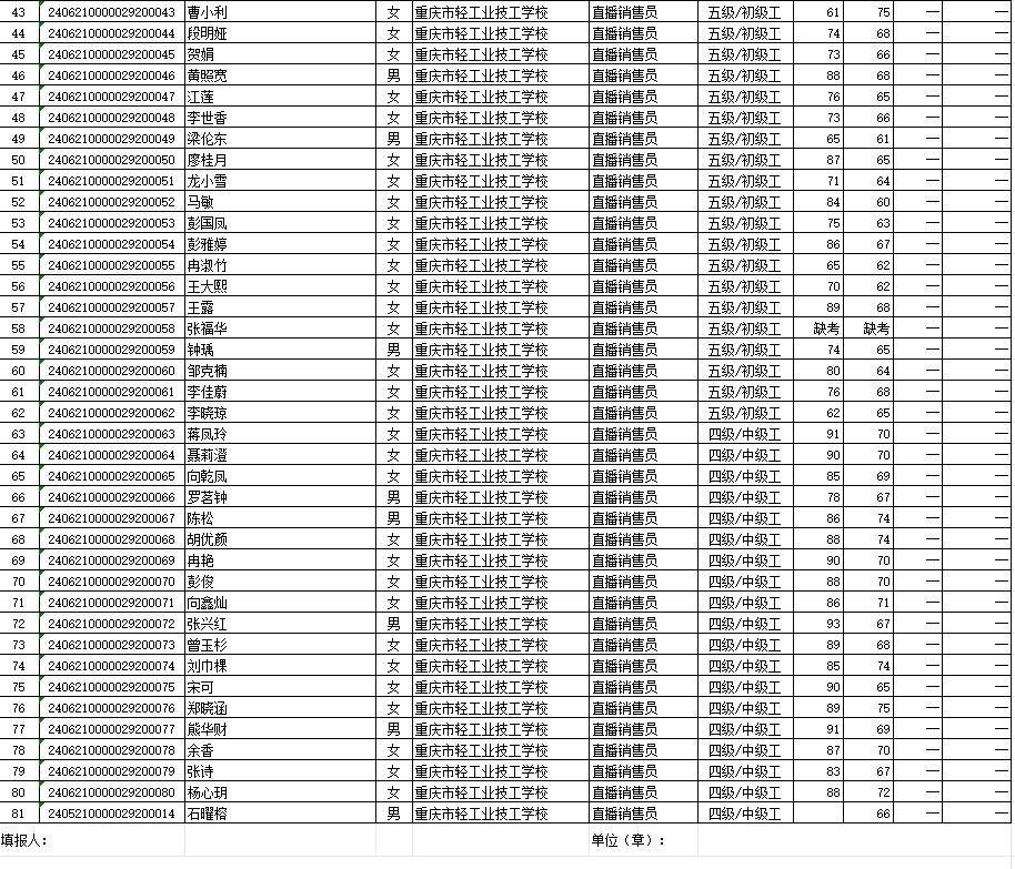 职业技能等级认定成绩花名册53批20240702