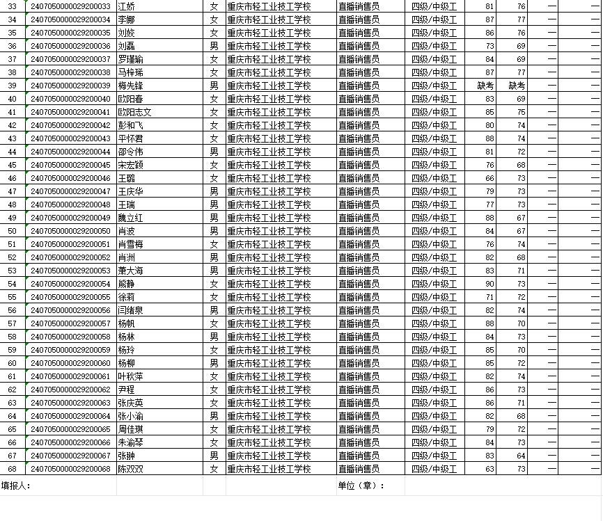 职业技能等级认定成绩花名册60批20240717