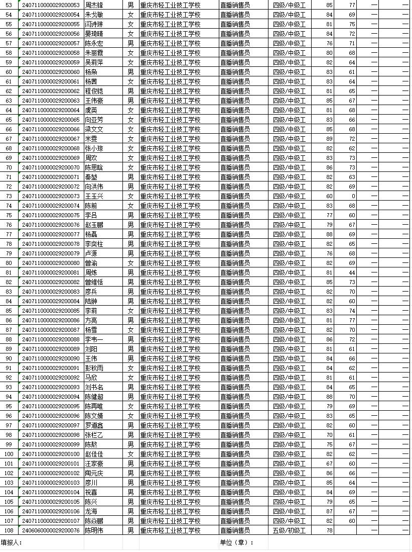 职业技能等级认定成绩花名册60批20240717
