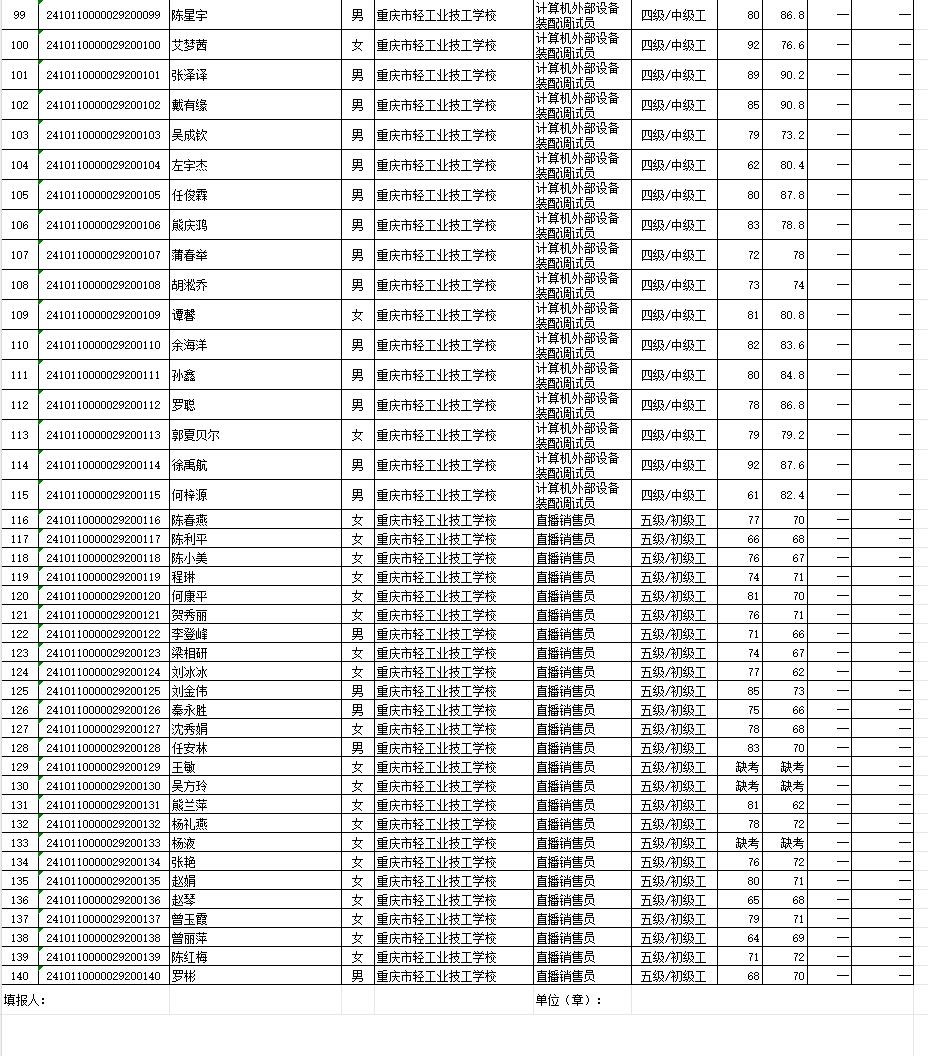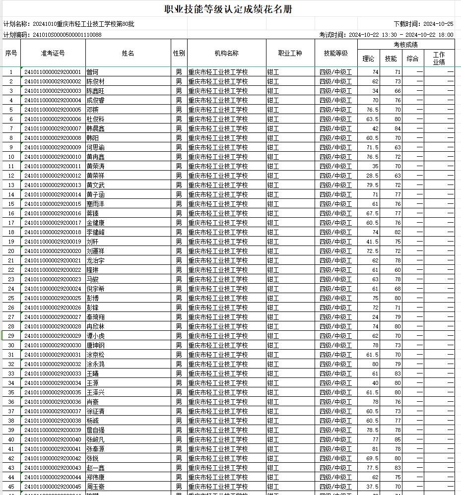 职业技能等级认定成绩花名册77/78批20241017