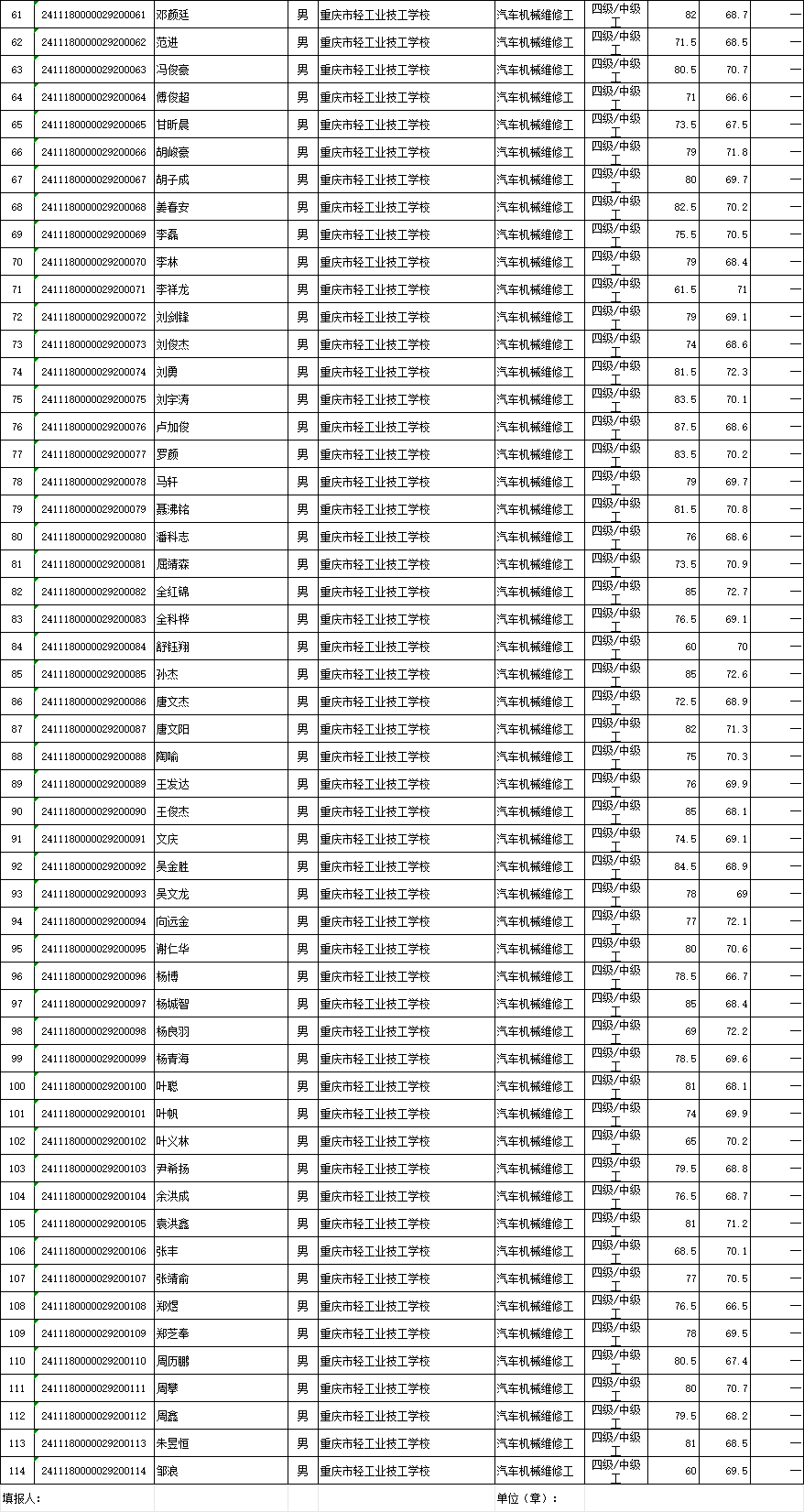 职业技能等级认定成绩花名册100批20241127