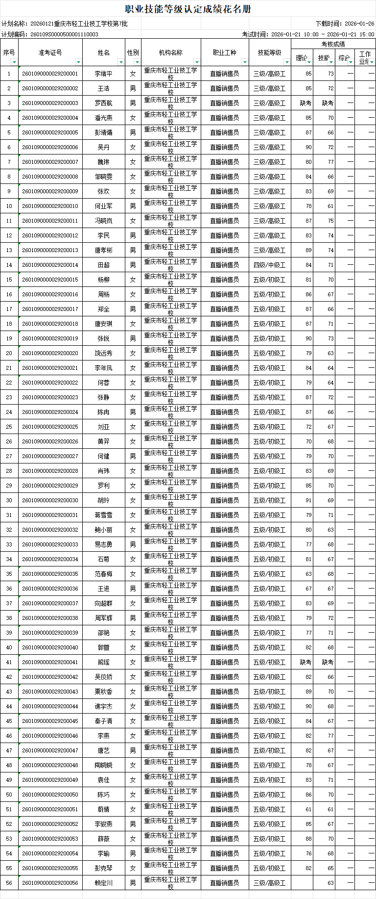 上一篇:职业技能等级认定成绩花名册第6批20260120(江津考点) 下一篇:职业技能等级认定成绩花名册第8批20260124