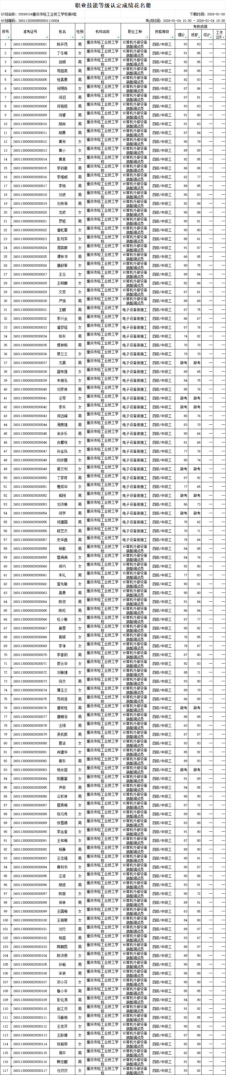 上一篇:职业技能等级认定成绩花名册第7批20260121 下一篇:职业技能等级认定成绩花名册第9批20260125(渝北考点)